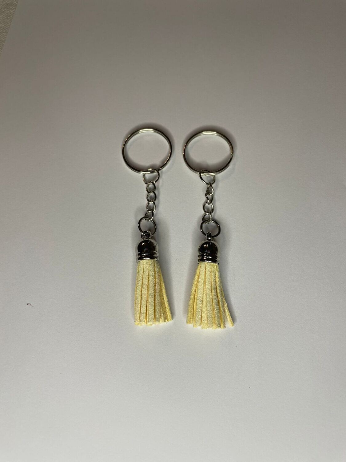 Silver Key Chain & Tassel - Cream (Short Tassel)